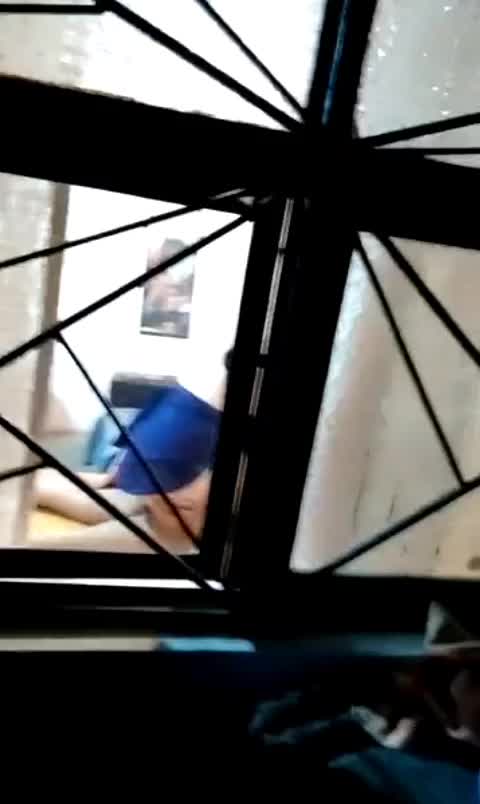 Кто-то подсматривает снимая на телефон в окно секс семейной пары.