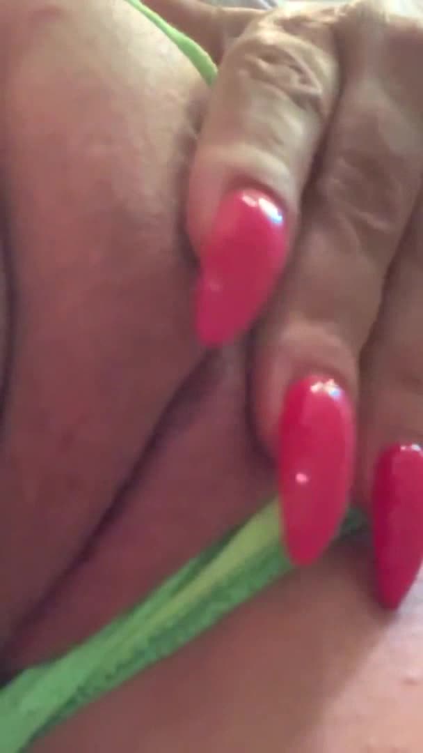 Как язычок показывает. Смотрится как на природе. Зелёное, трусы. А красный маникюр, как ягодки.