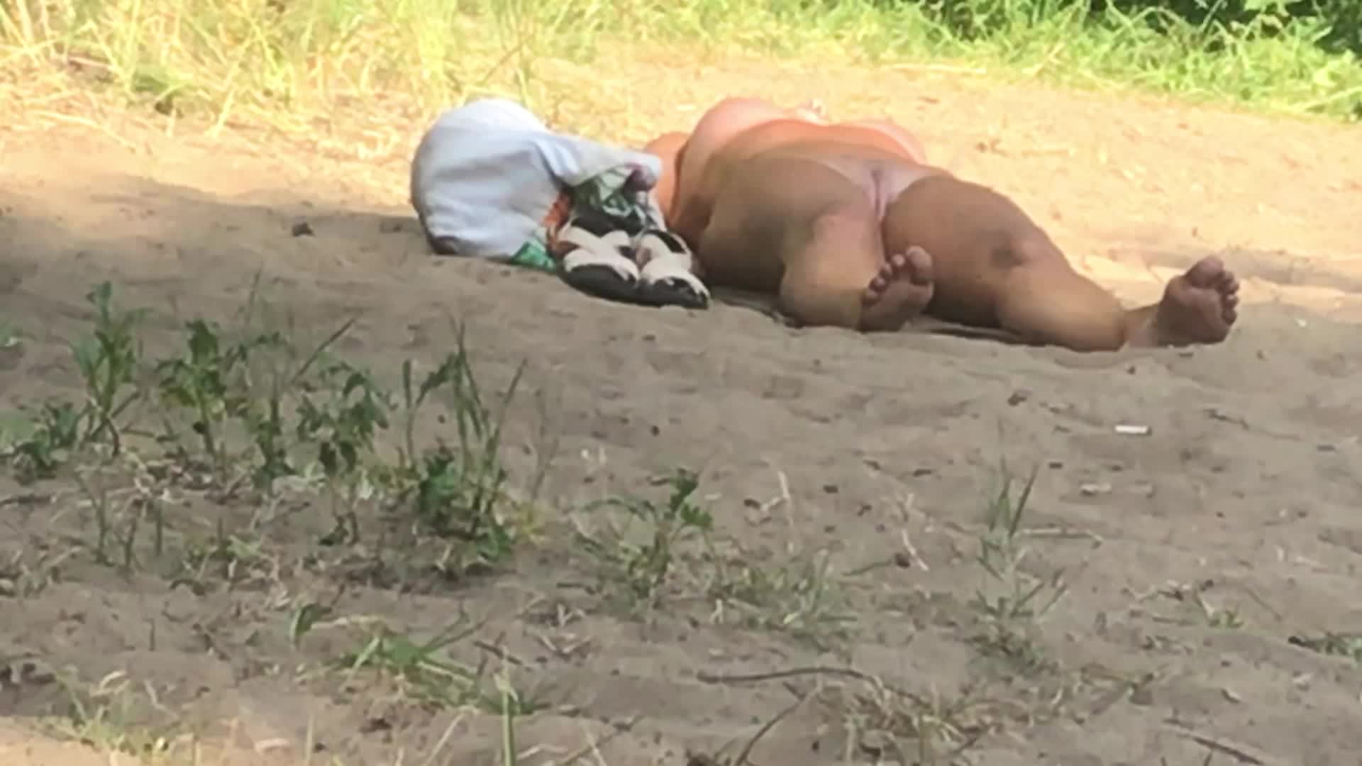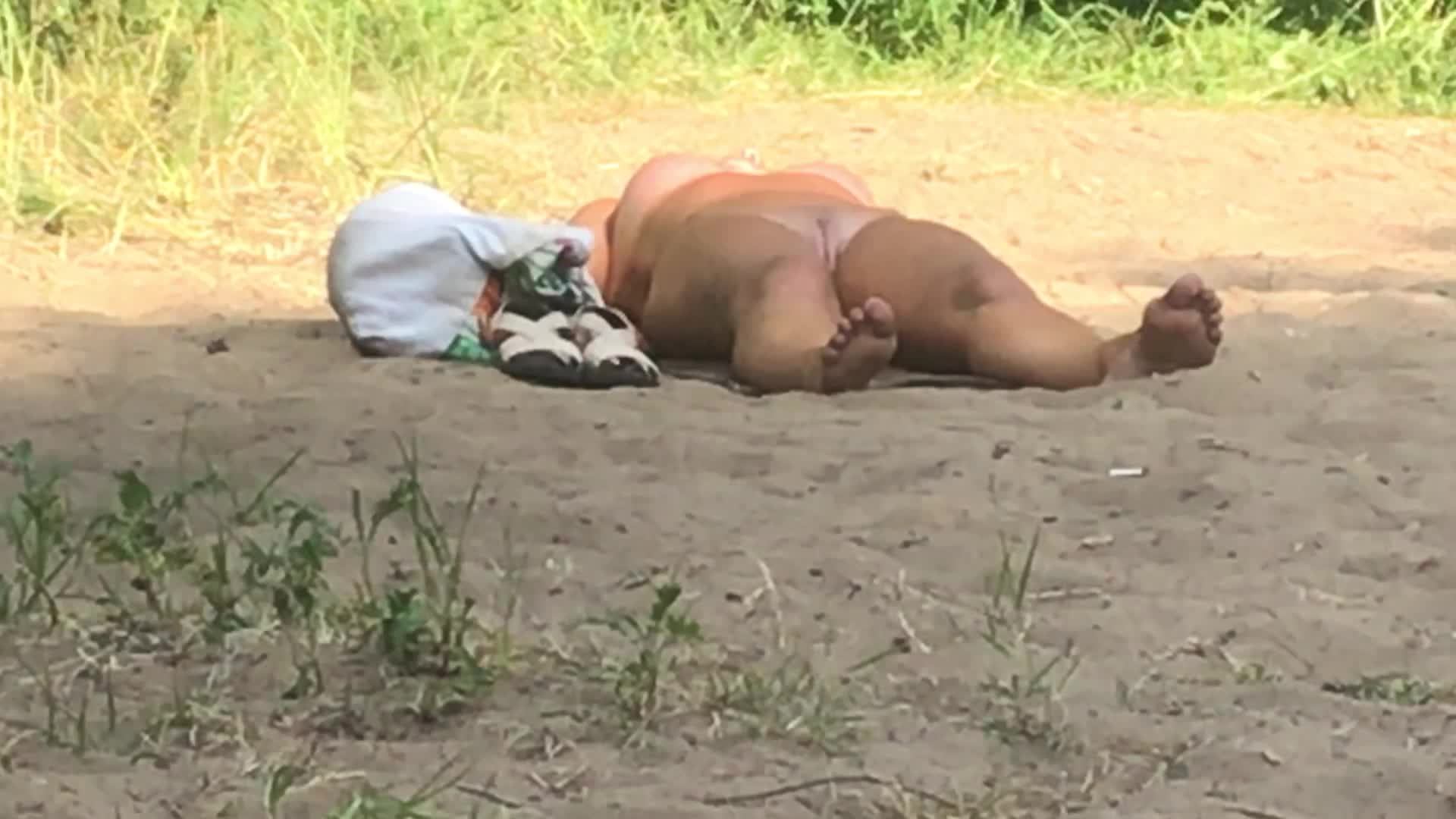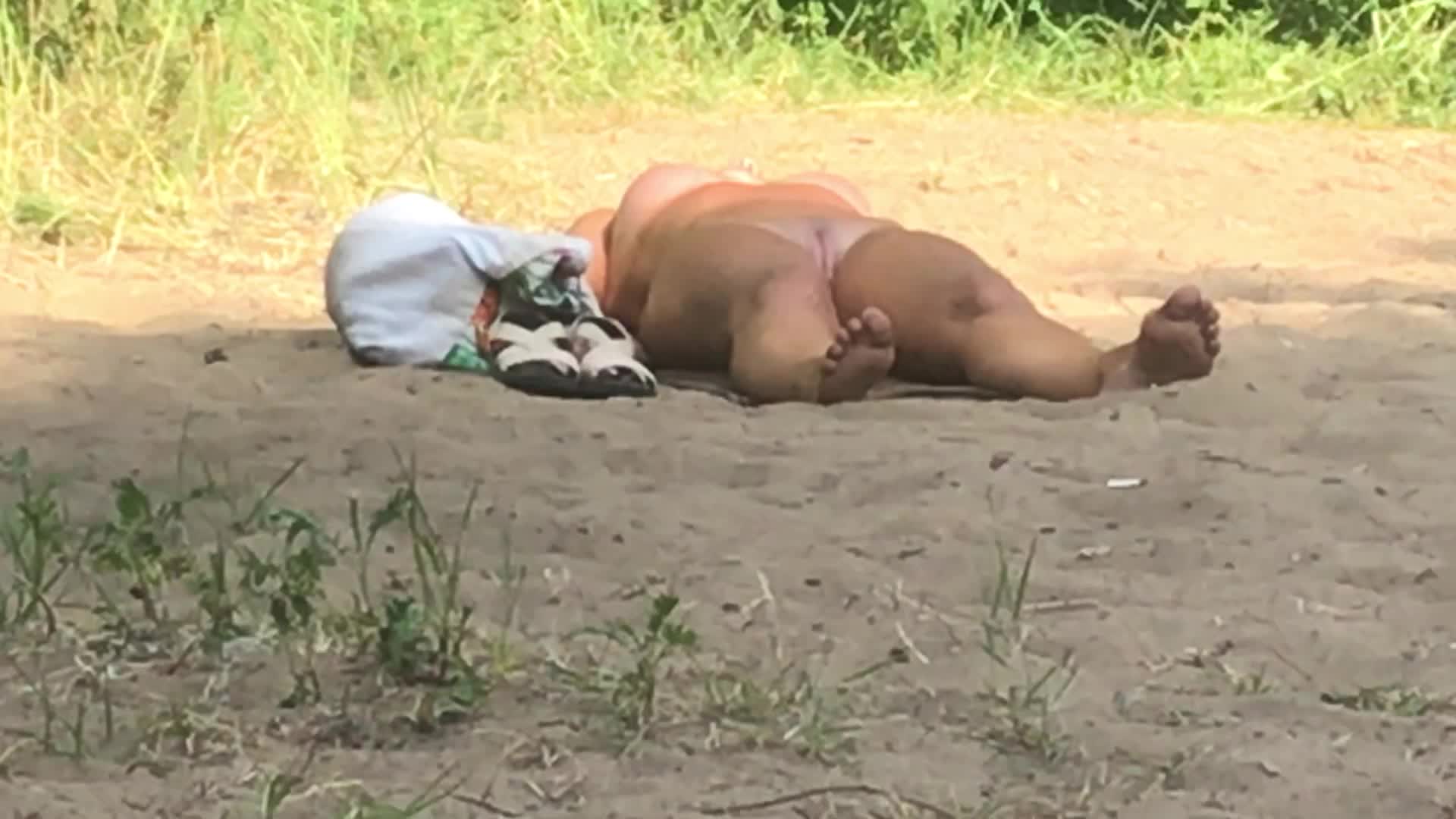 Очередная голенькая на пляже