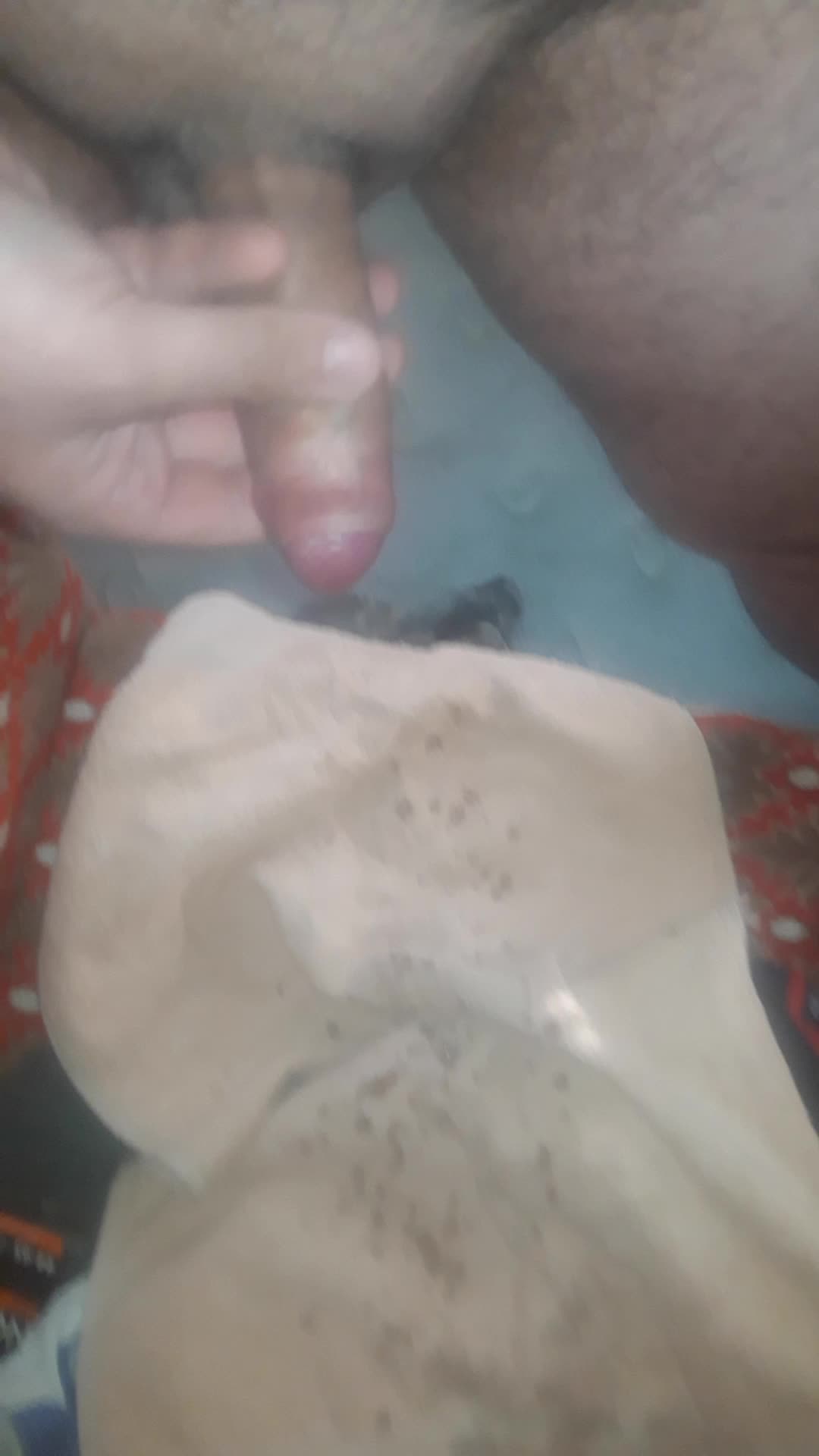 Сливаю сперму на полотенце.