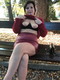 Прогуливается по городу, надевая любимую красную юбку.