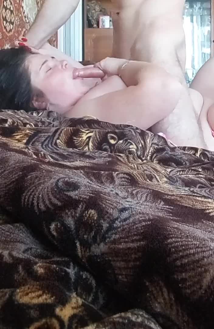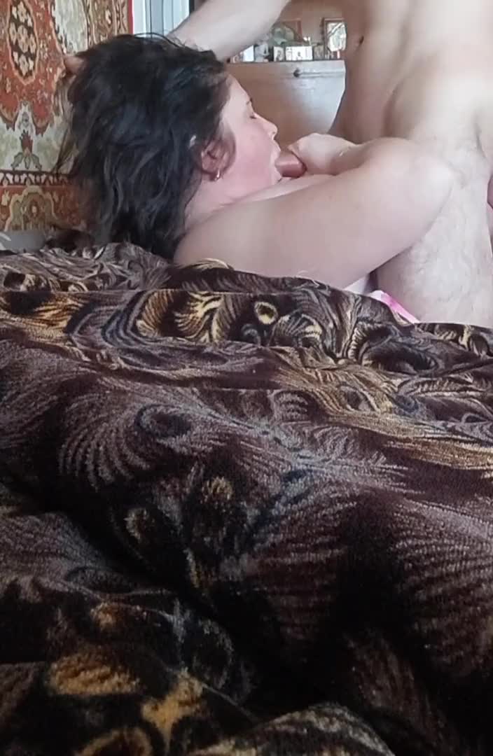 Женщина с удовольствием берет в рот