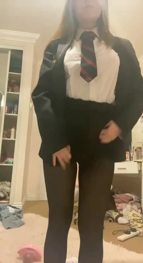 девка в красивой форме снимая её на камеру