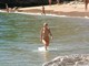 Блондинка с шикарной попкой отдыхает на море и нежится на солнышке и песочке