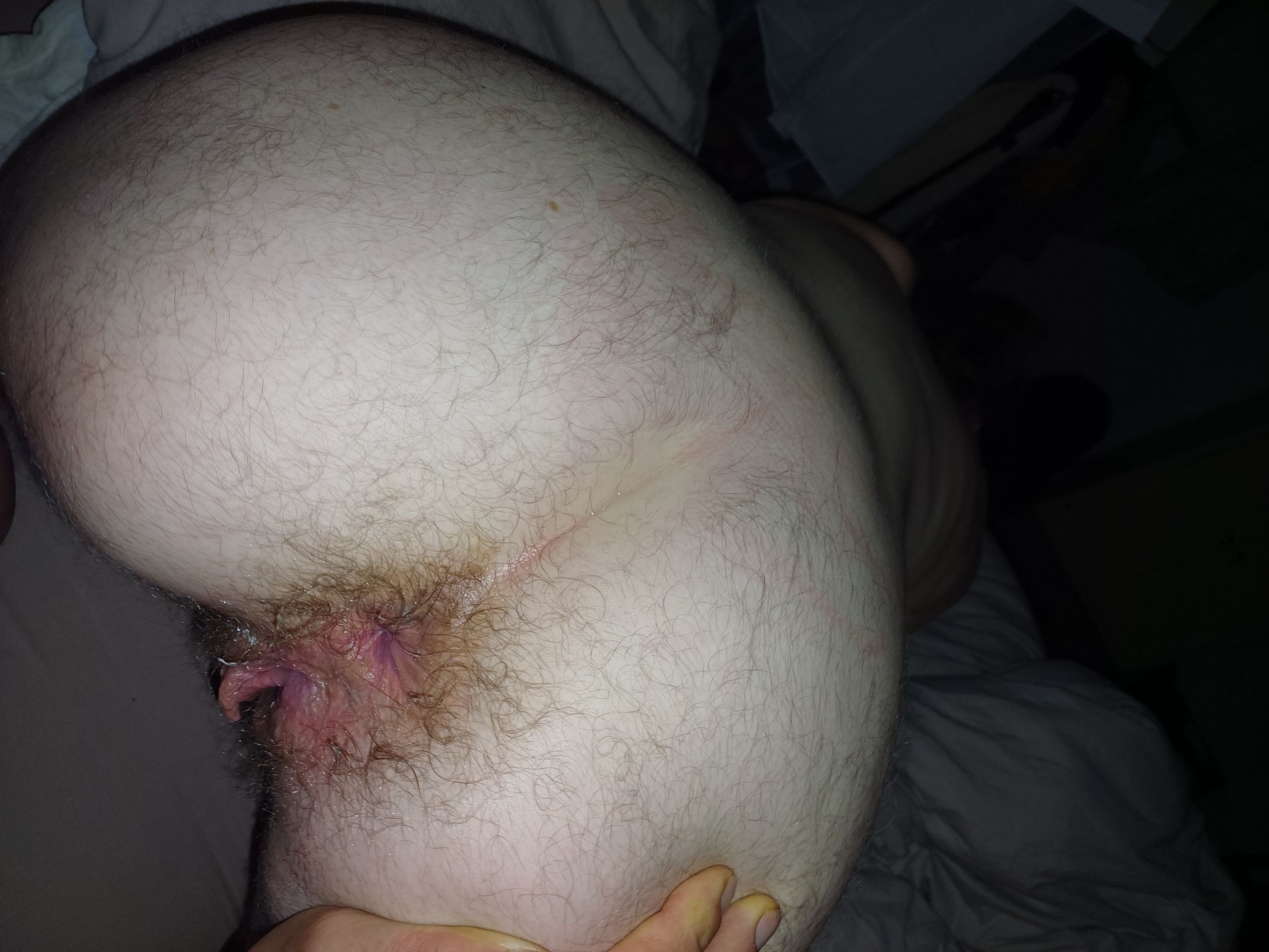 парень фотографирует дырки своей волосатой подруги