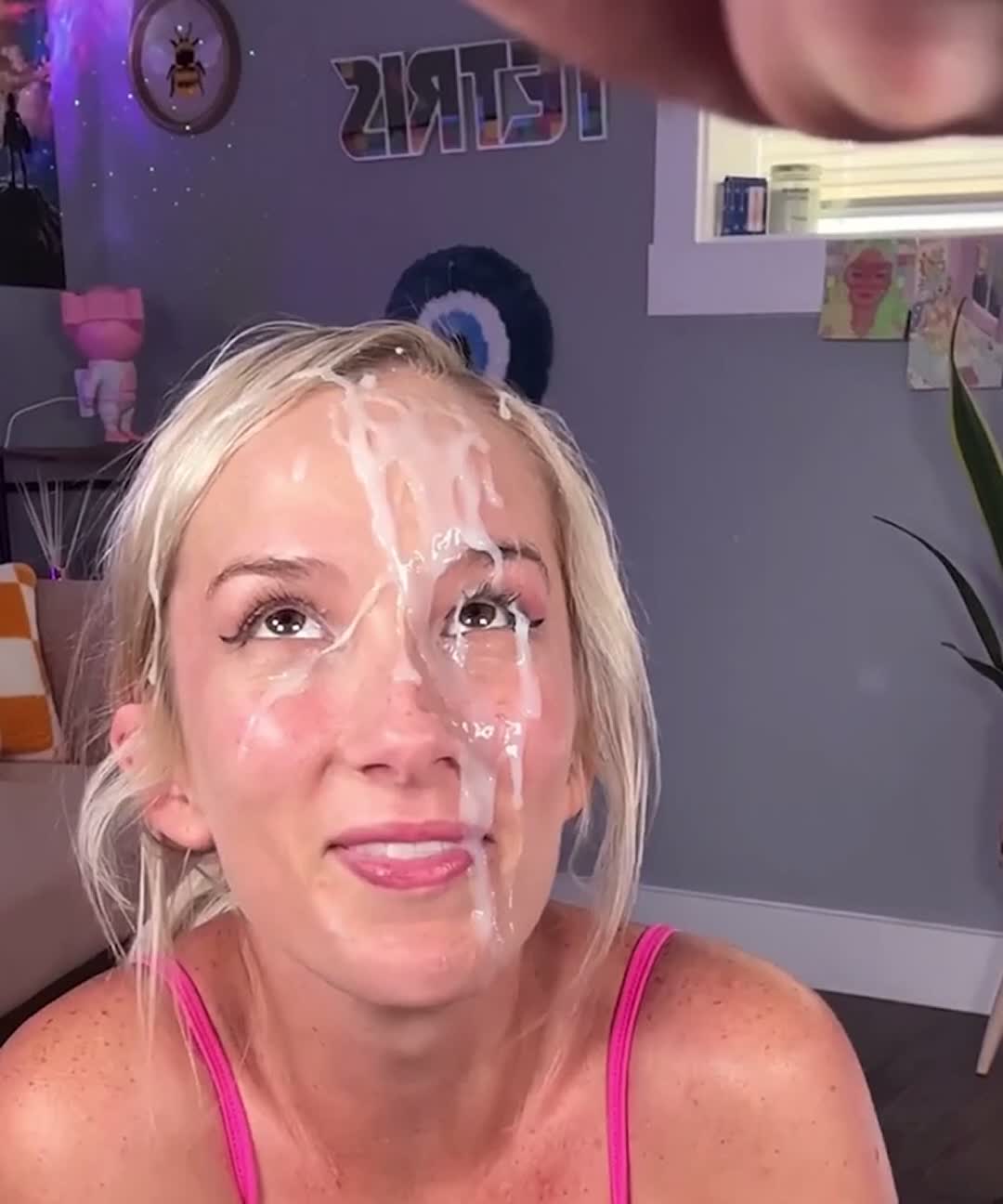 парнишка кончает на лицо красотке и фоткает