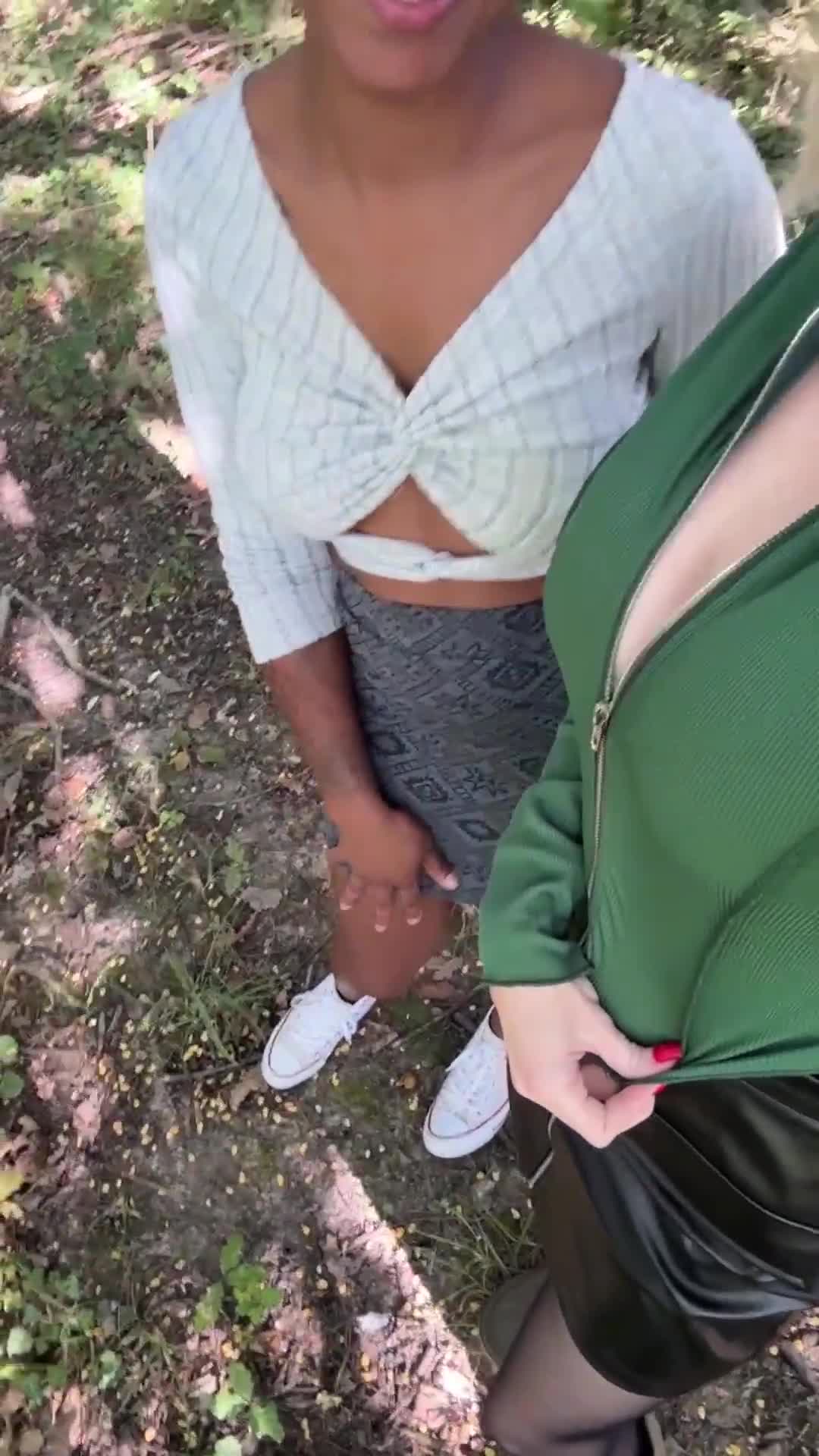 где-то в лесу две разные девушки разного цвета кожи отсосали мужику член