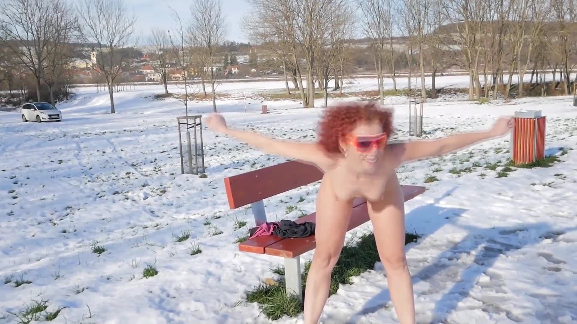 Какая она моржиха. Нет, каждая осмелится вот так вот зимой в холоде, сниматься. А вот с пробочкой даже интересно. Теперь все сжалась от холода.