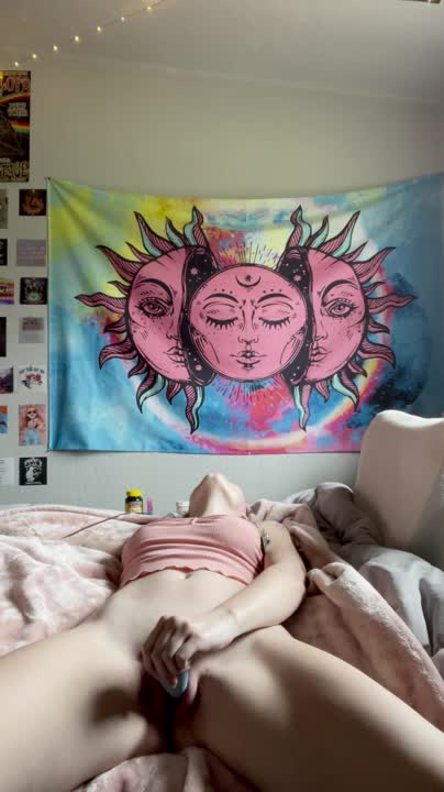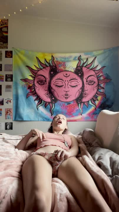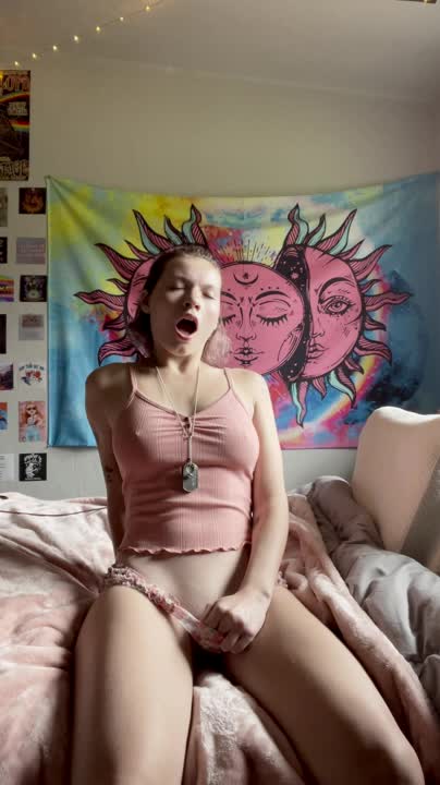 девка дрочит клитор вибратором и кончает
