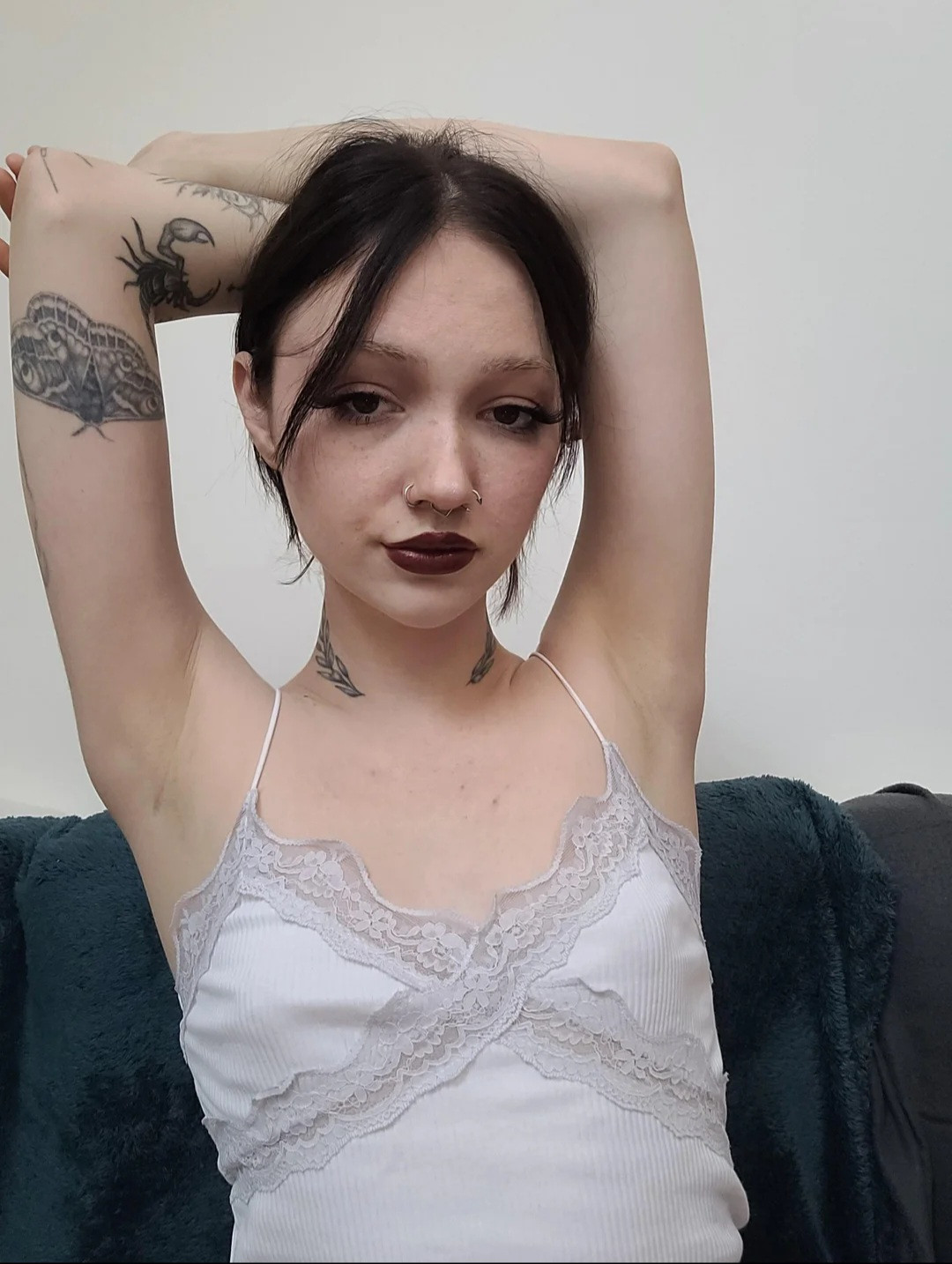 татуированная и пирсингованая девчонка показывает свои интимные части тела