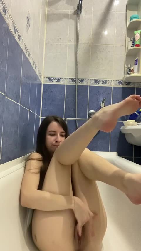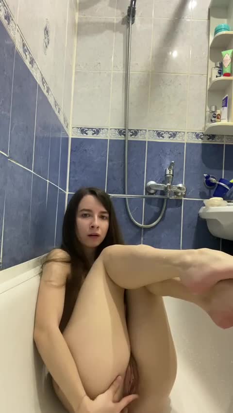 Не отвлекаясь от помывки симпатичная девчуля заодно и потеребонькала свою пилотку