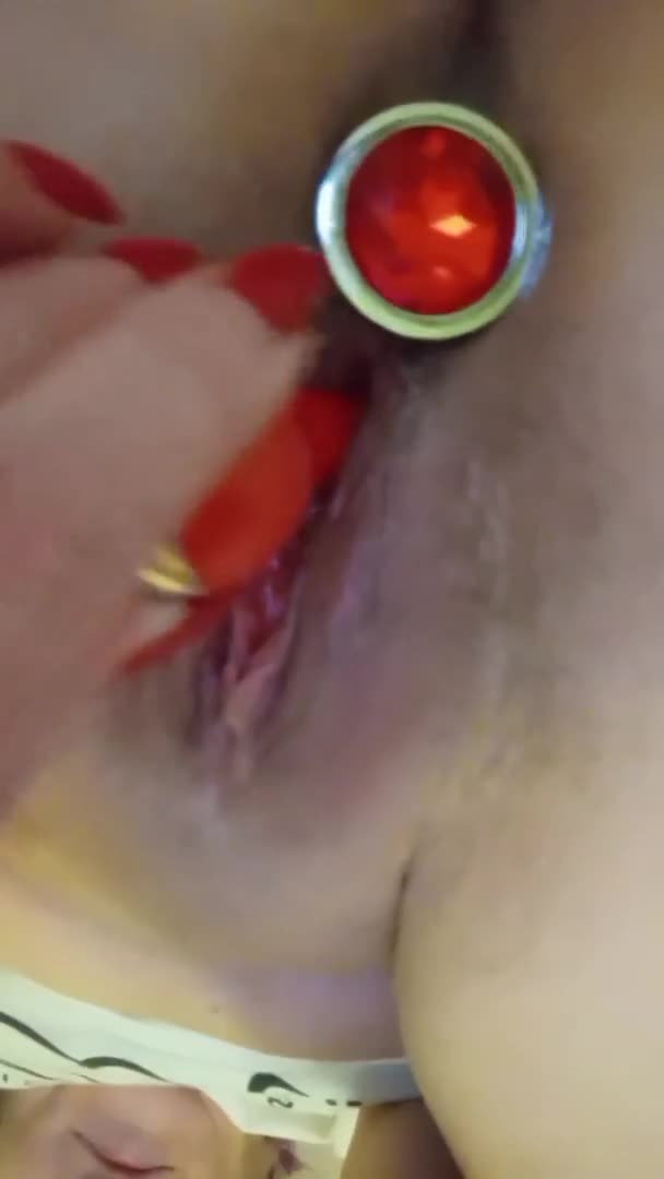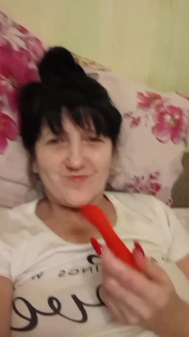 Зрелая брюнетка показала свои гладенькие дырочки и красные игрушки в них!