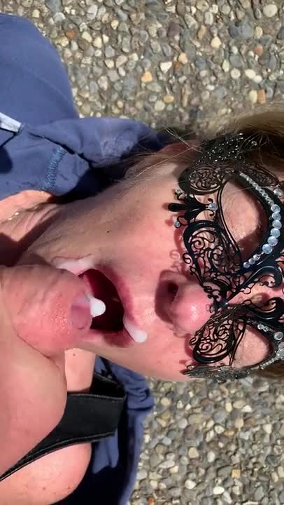 Парень демонстрирует своё превосходство, помочившись, а затем облив спермой девушку в маске.