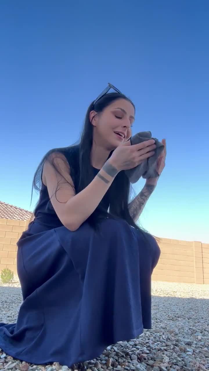 девушка в платье какает на улице