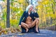 Стройная девушка с мясистой киской демонстрирует голую в осеннем парке