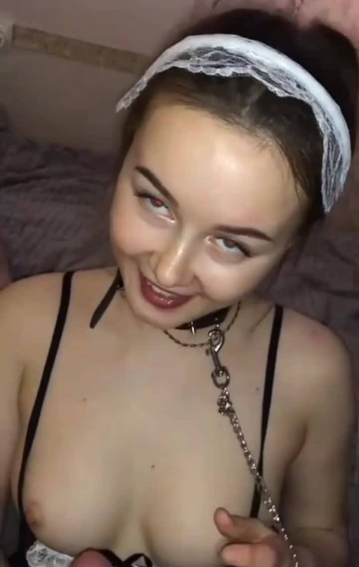 Света в костюме горничной отсасывает парню с диалогами.