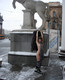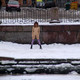 Волга (Элен Волга) позирует в зимнем Санкт-Петербурге у реки.