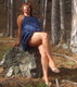 Жена в лесу в синем платье и без