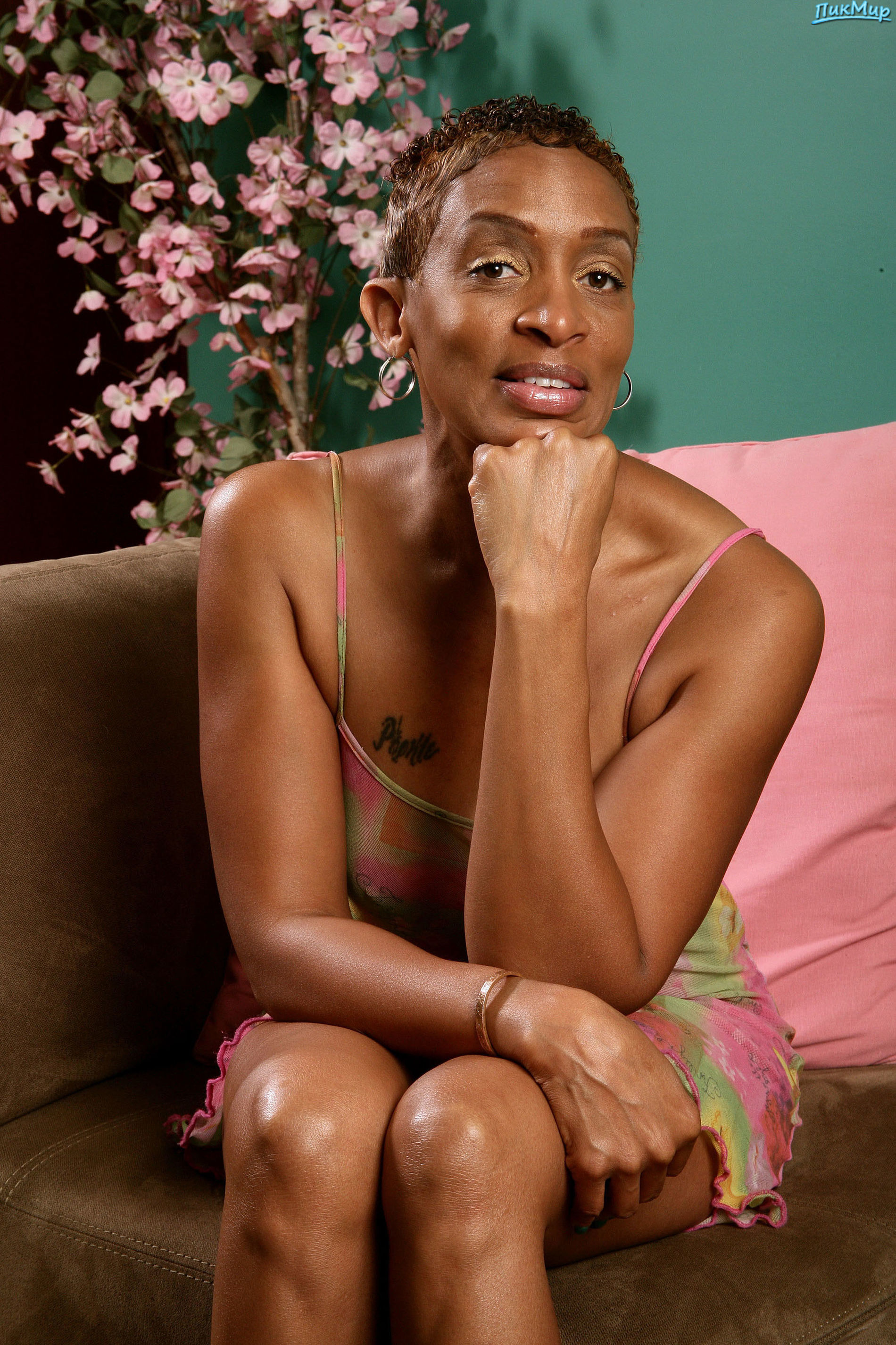 Зрелая Афро-Американка Донни позирует на старом-добром, слегка-подпуканом пиндоском диванчике!
