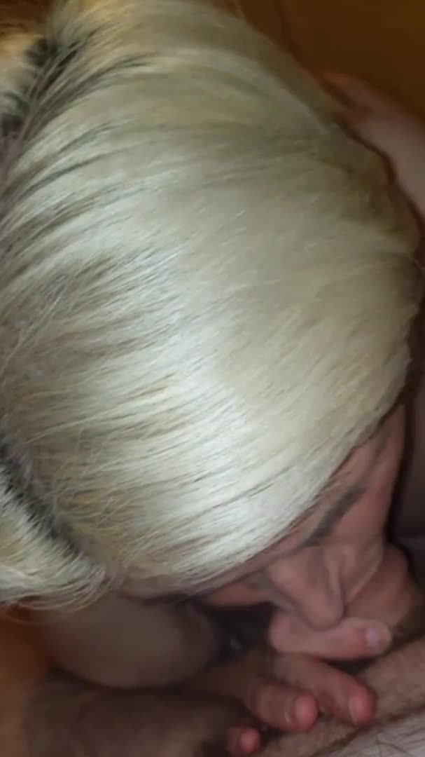 Блондинка сосет член