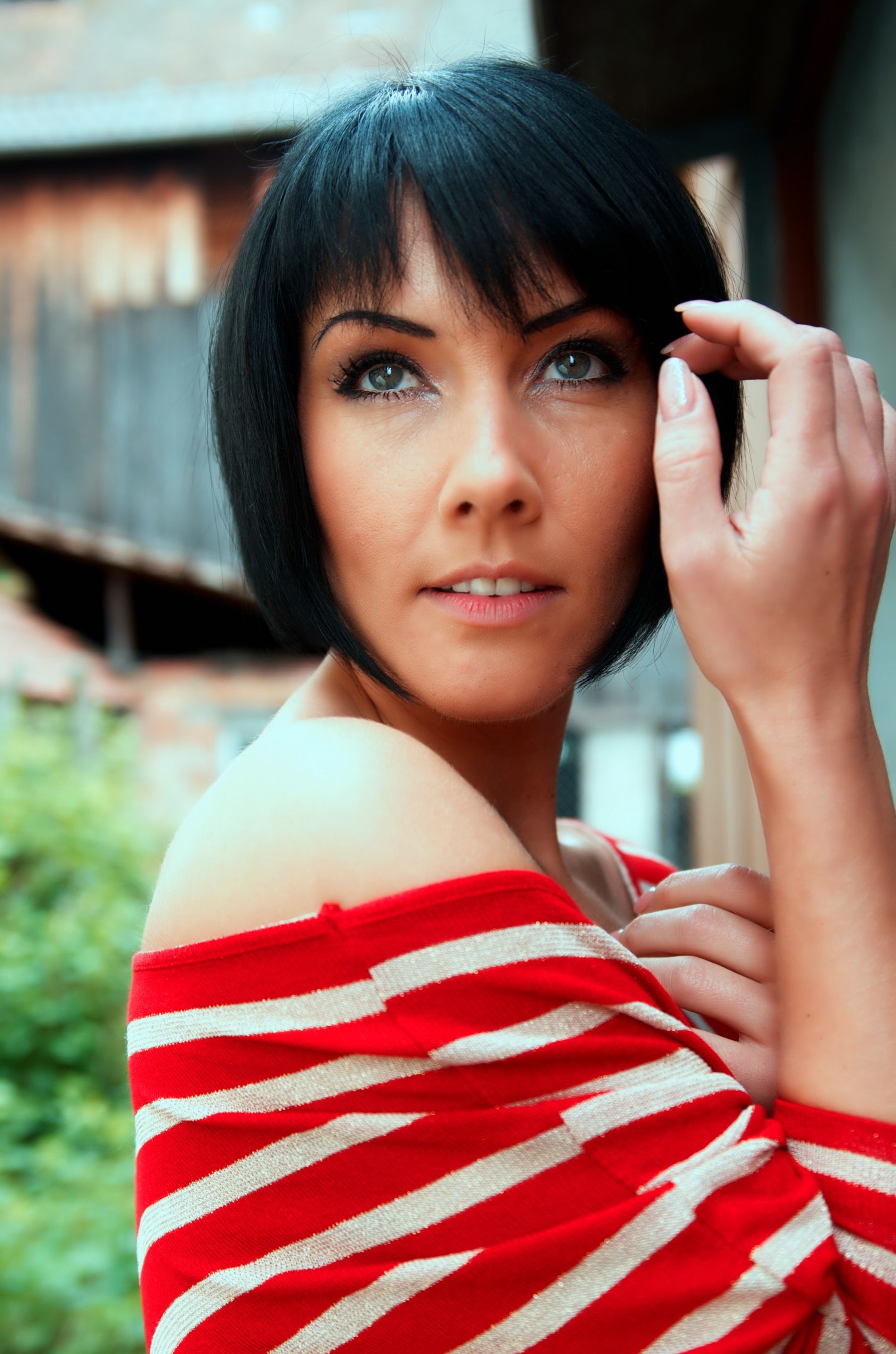 Девушка с короткими черными волосами и прекрасной фигурой.