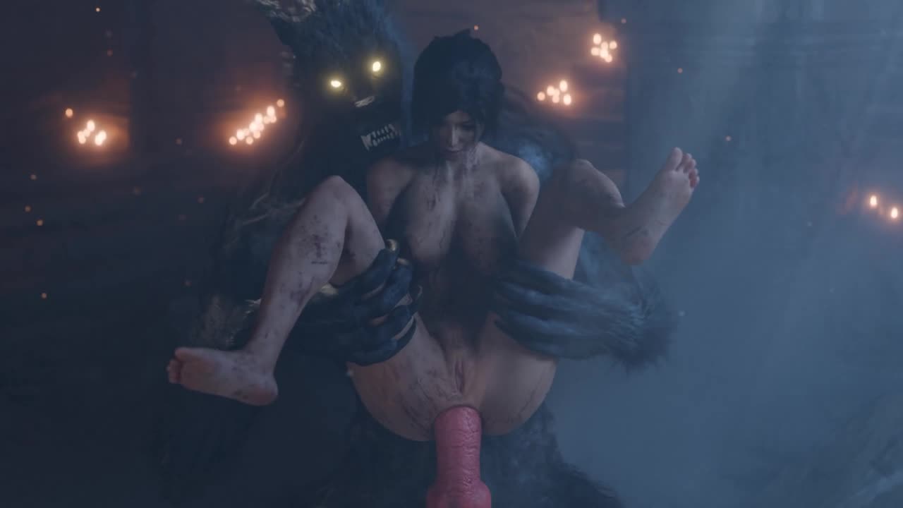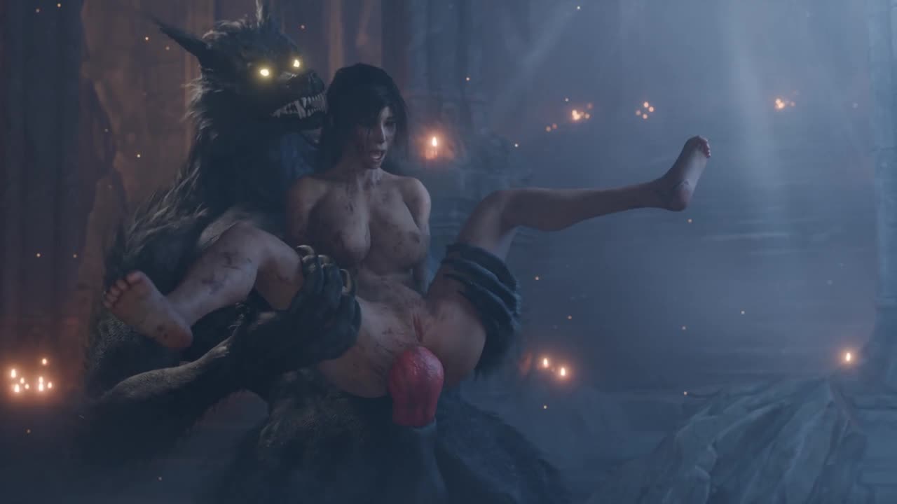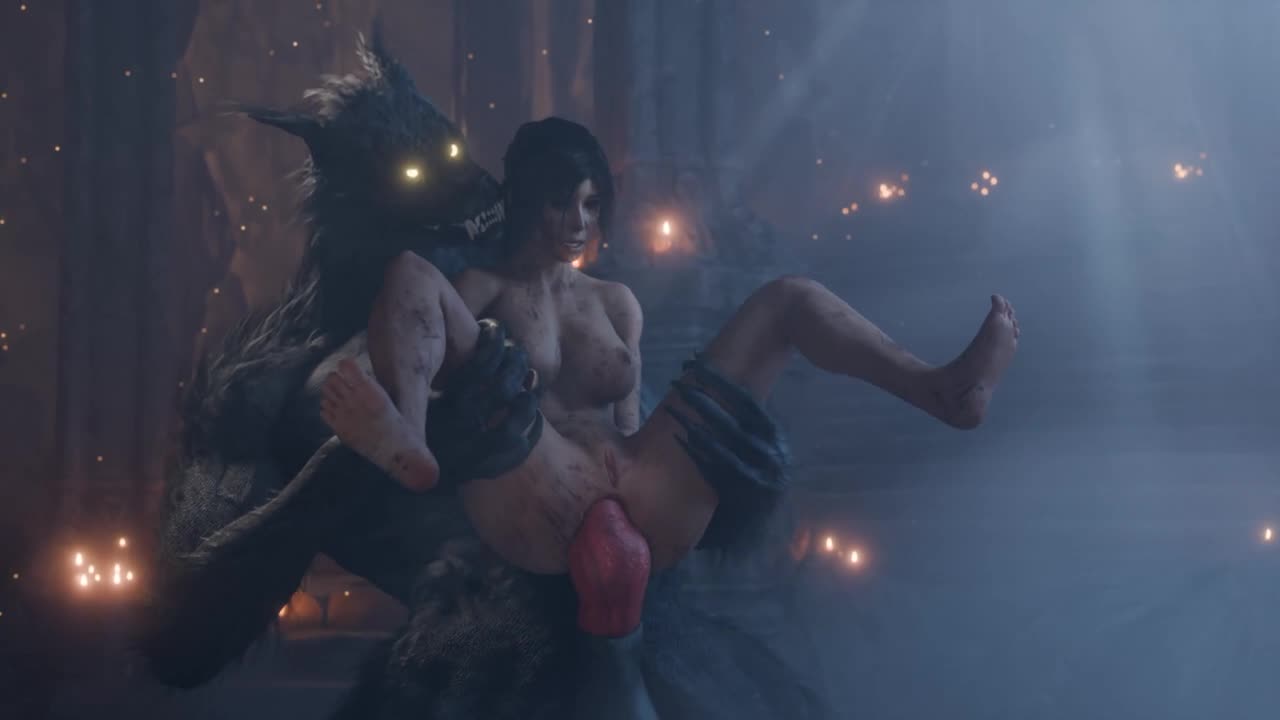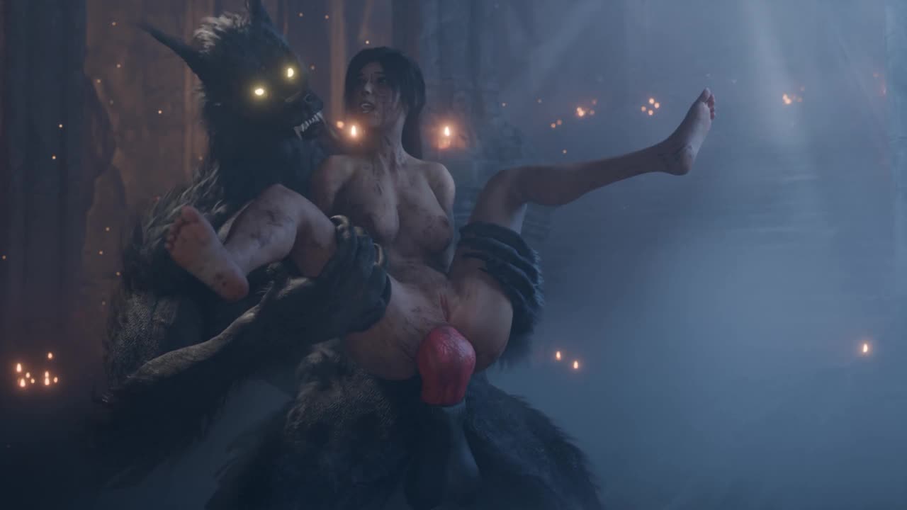 Злобный волчара насаживает Лару на член.