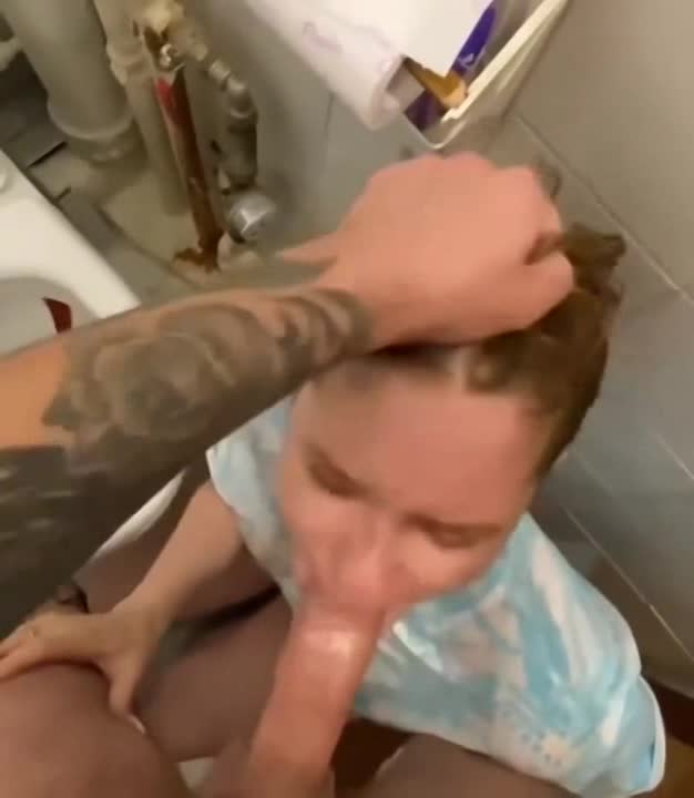 Ссыт в туалете на молодую жену и даёт ей после этого отсосать ему.
