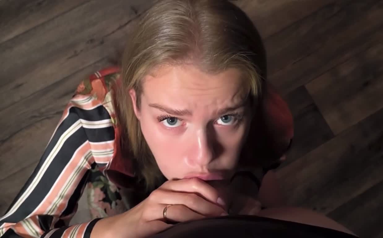 Похоже что уже давно стоит на коленках на твёрдом холодном полу... Но по-прежнему полна решимости довести дело до конца.