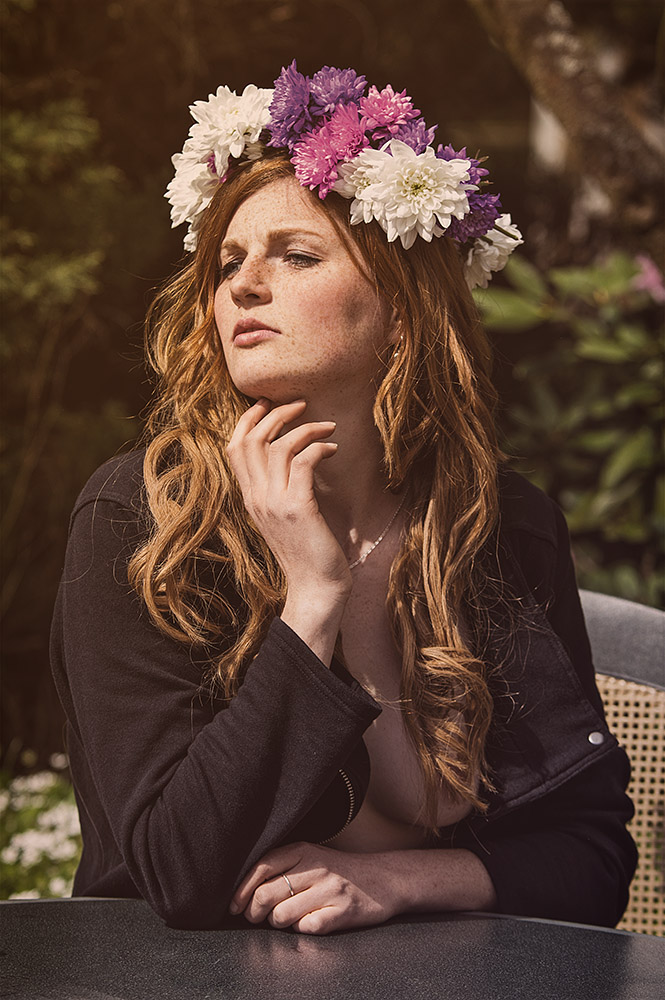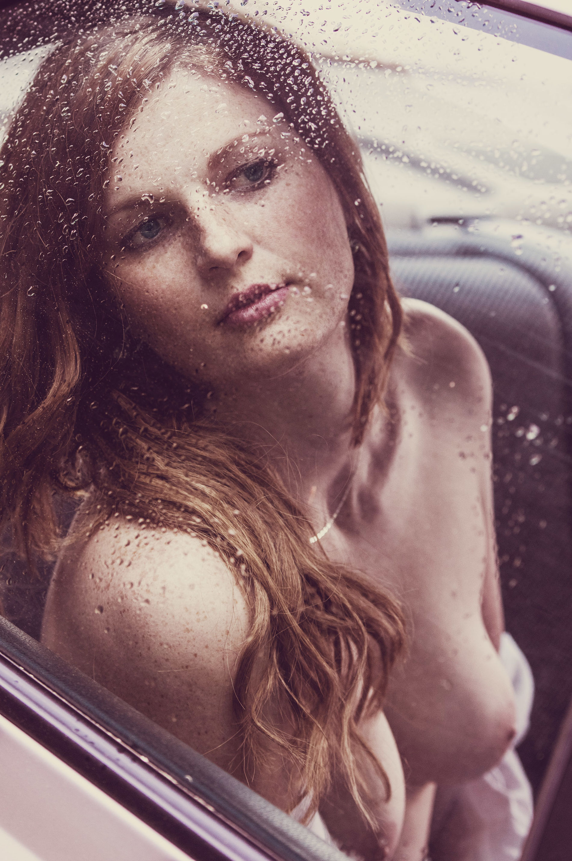 Девушка с веснушками демонстрирует свои прелести.