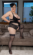 Зрелая женщина в элегантном черном нижнем белье и изысканной шляпе.