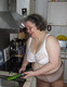 Немецкая бабушка Биргид позирует на кухнес огурцом!