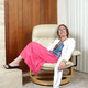 Потрёпаная жизнью зрелка Мэри позирует на кресле.