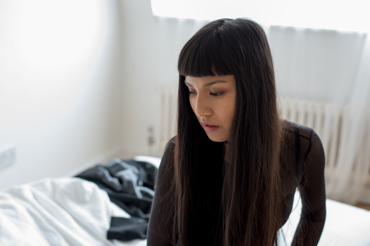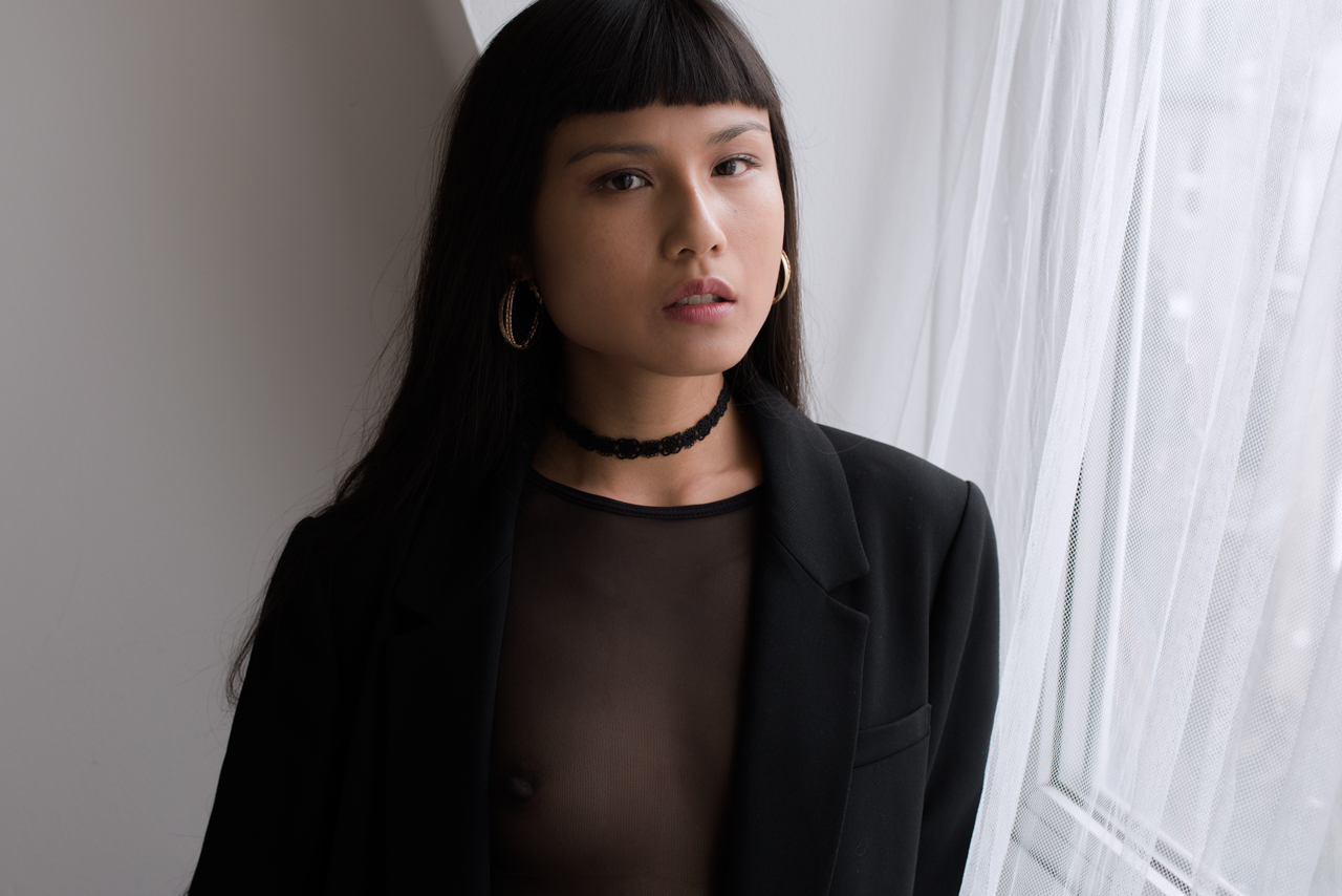 Молодая брюнетка с немного экзотическим типом красоты и стройной фигурой.