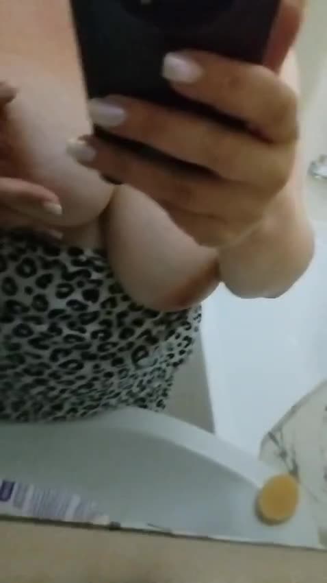 Зрелая дама демонстрирует свою зрелую и аппетитную грудь в ванной