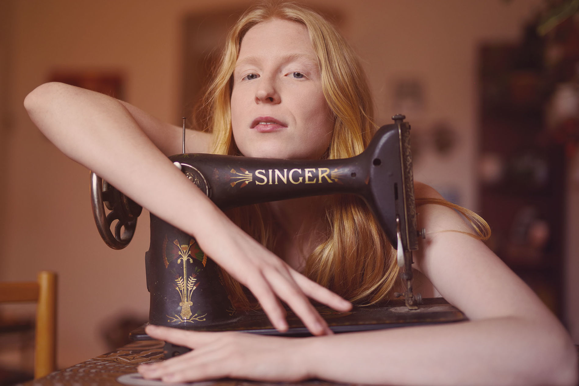 Интересная девушка с рыжими волосами.
