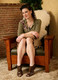 Монатая зрелка Саншайн позирует на кожаном кресле.