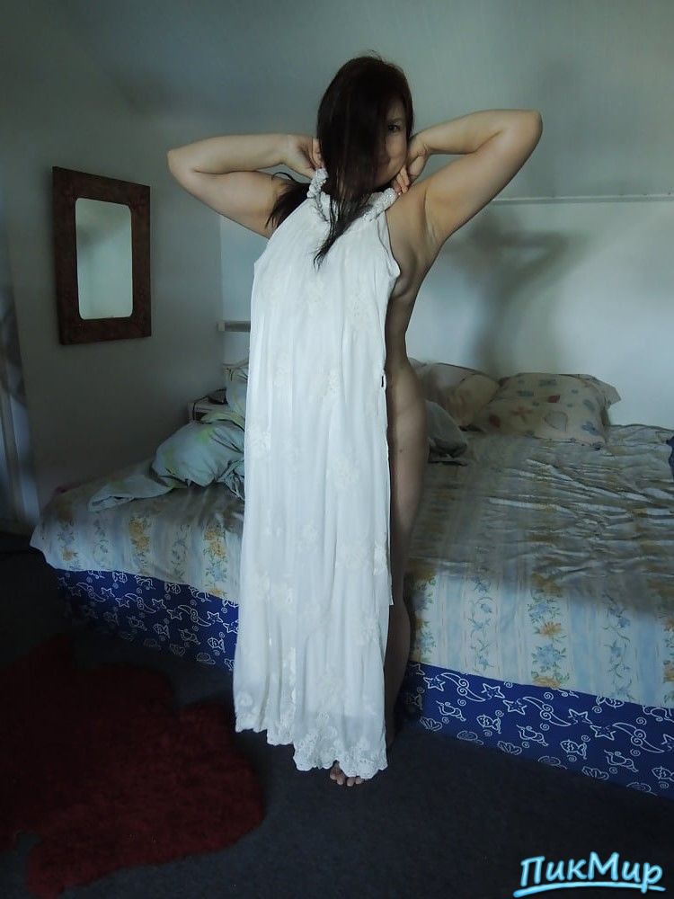 Позирует голая прикрываясь сорочкой и убирает ее