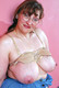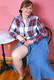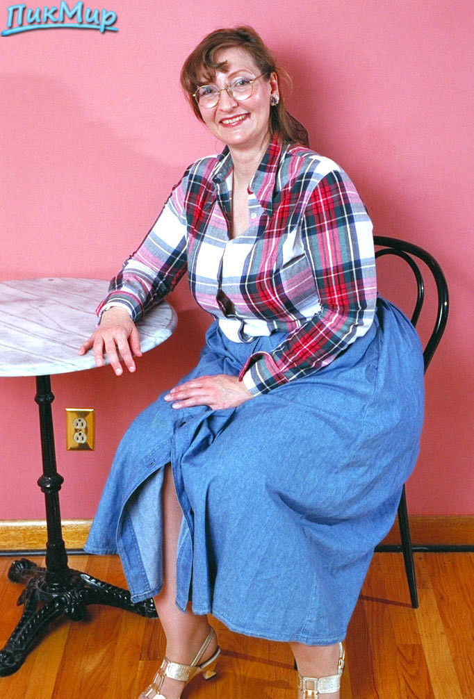 Толстожопая бабушка Джуди позирует возле столика.