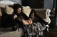 Гибкая модель позирует на диване и перед зеркалом