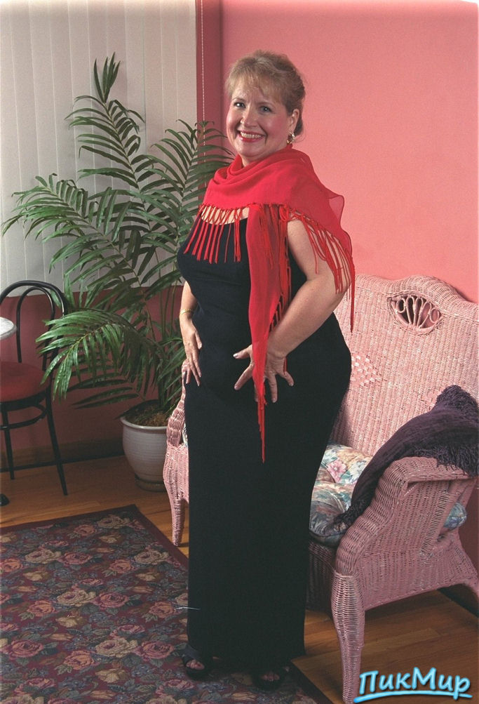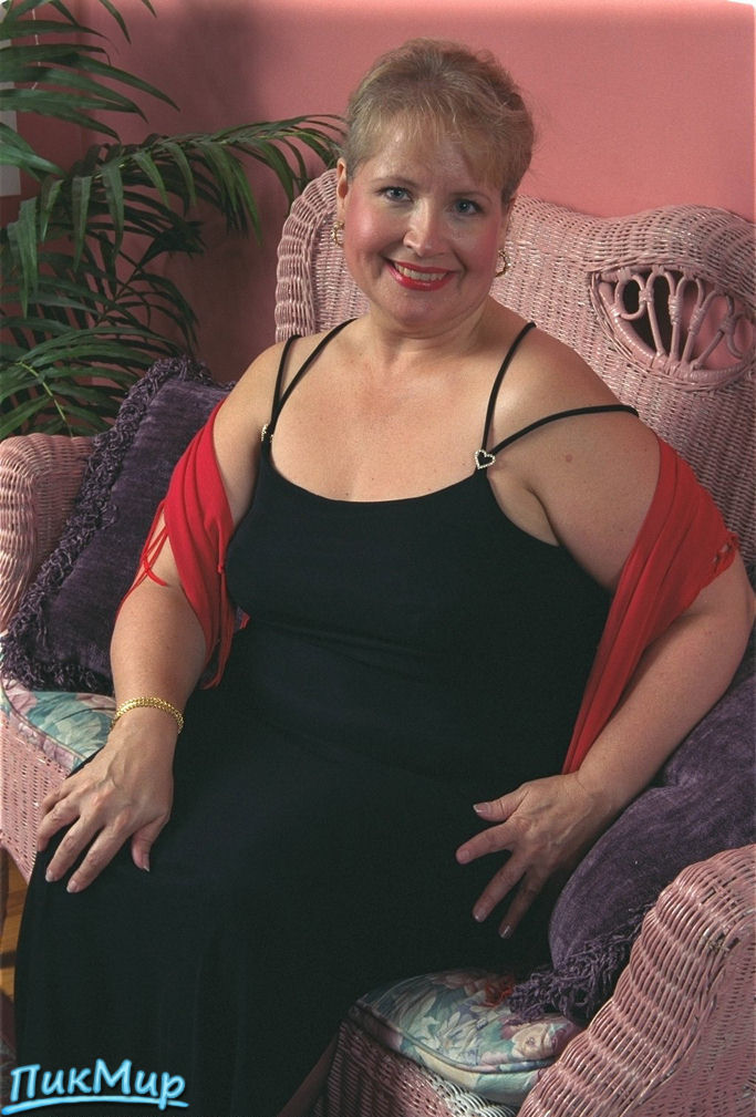 Зрелая пышка Келли позирует на плетёном диванчике!