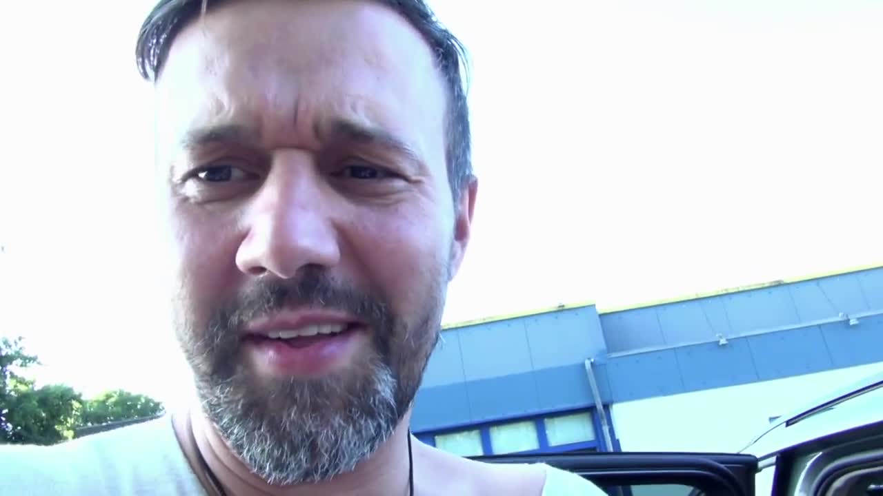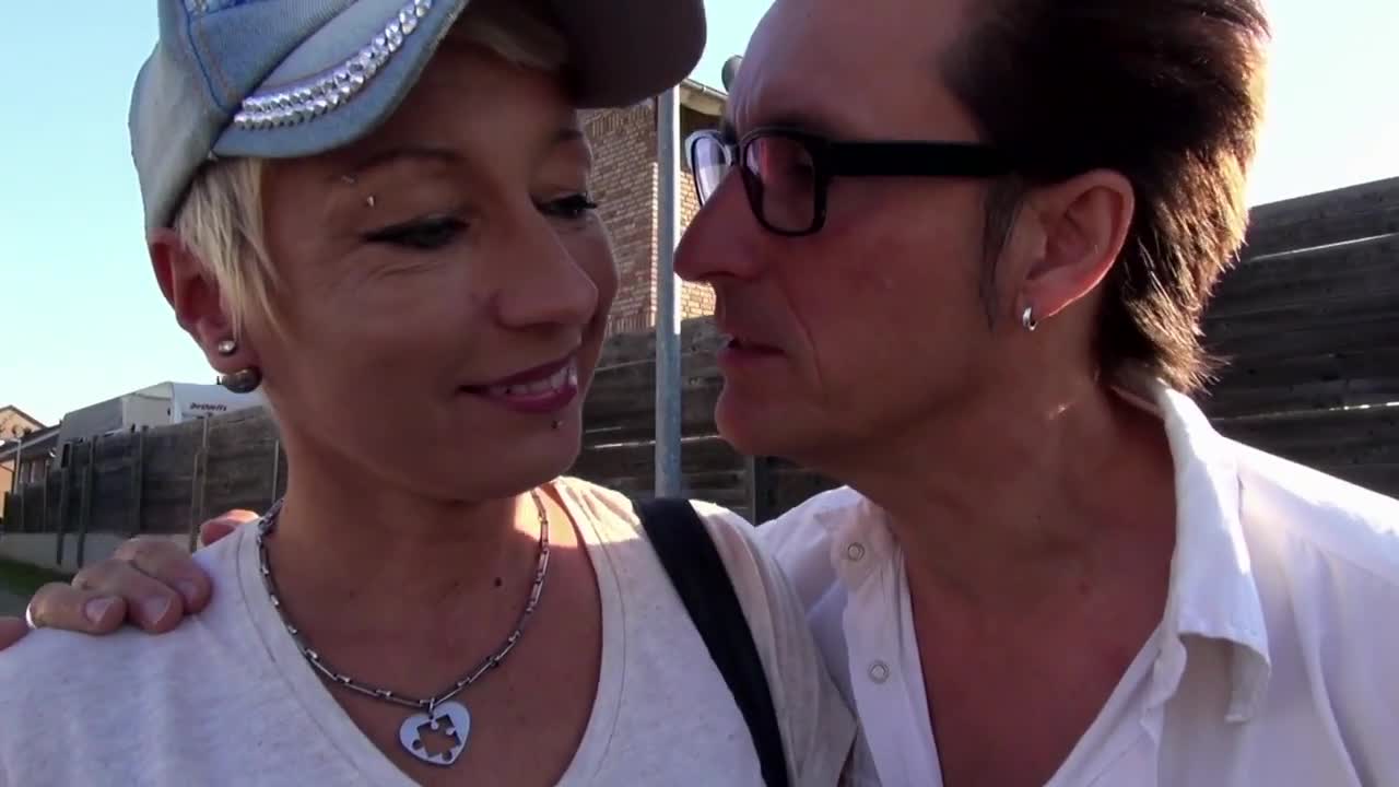Зрелая блондинка с огромными татуировками занимается сексом в машине.