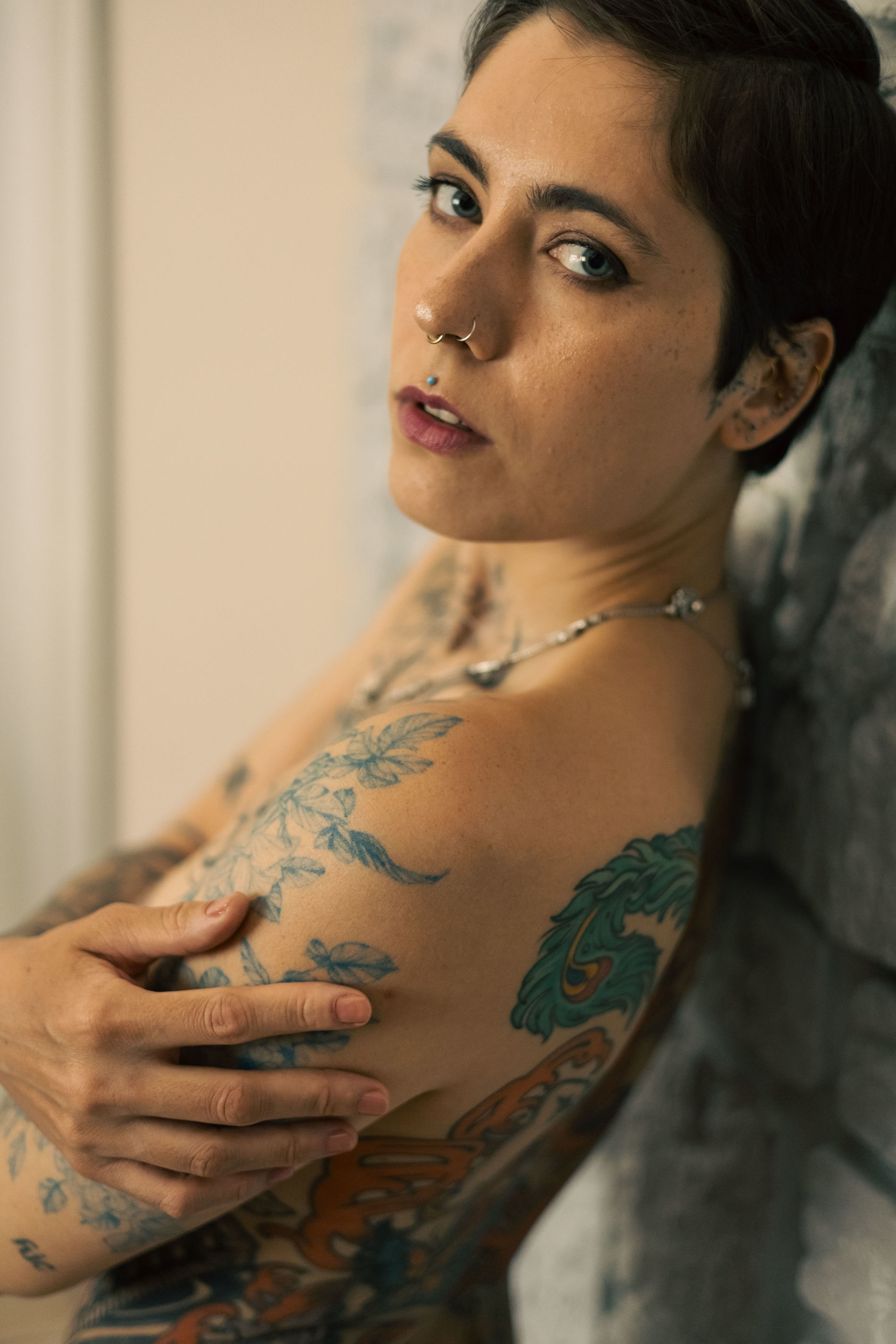 Красивая девушка с татуировками по всему телу. Какая жалость.