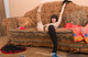 Мохнатая Алинка позирует на диванчике.