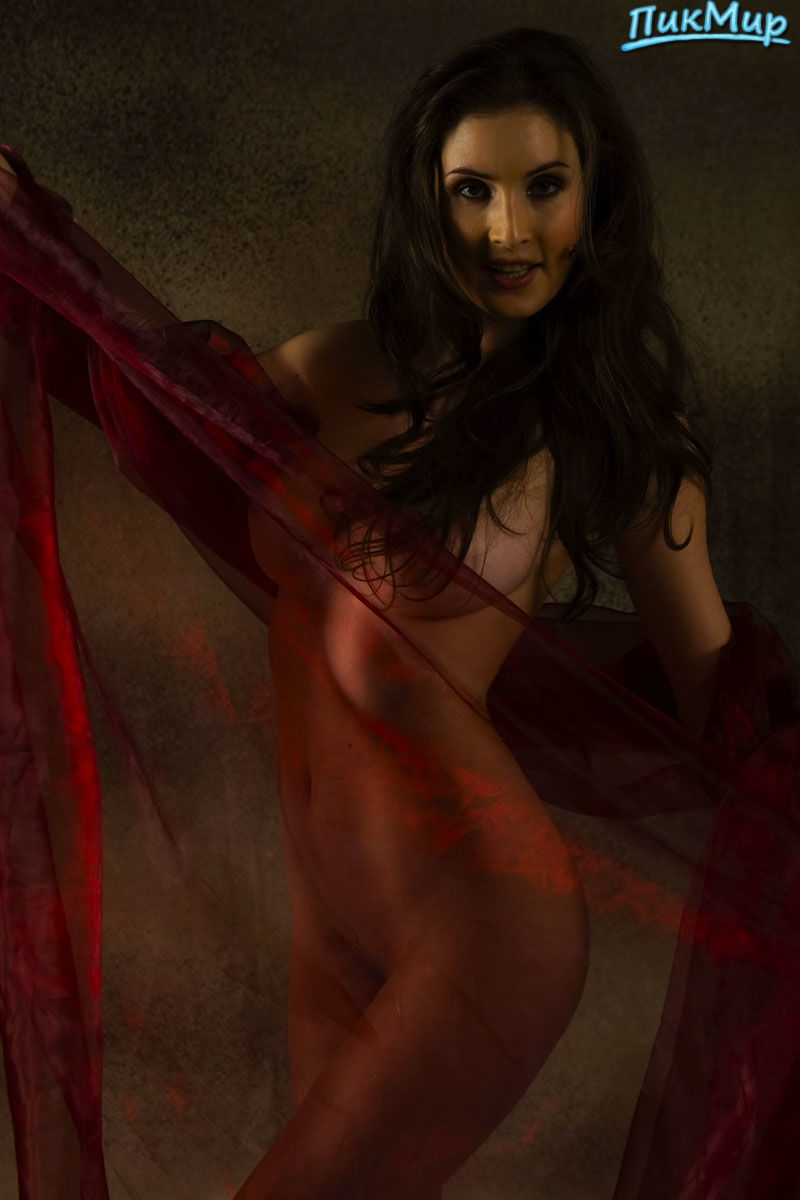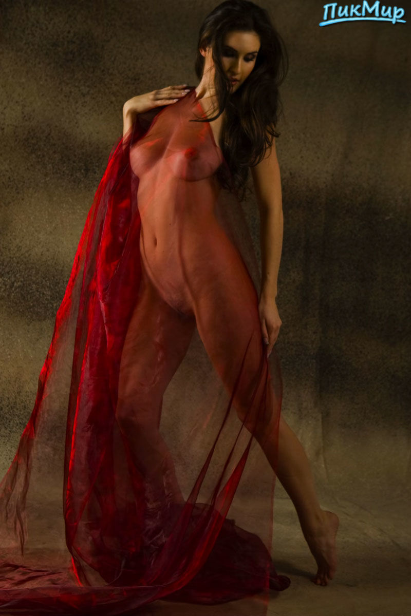 Девушка-модель в танце с красной прозрачной туникой показала свое красивое тело.