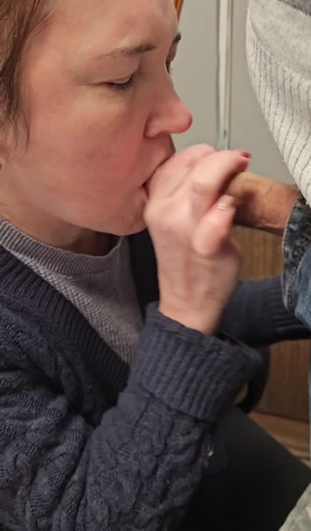 Зрелая коллега сосет на работе