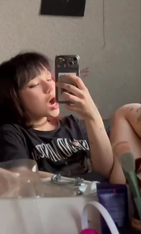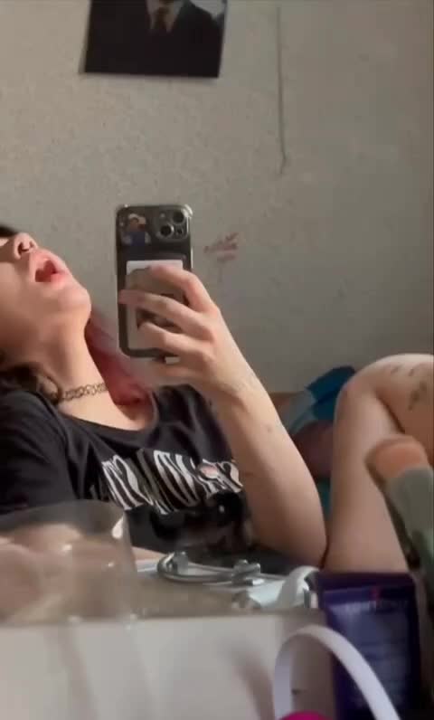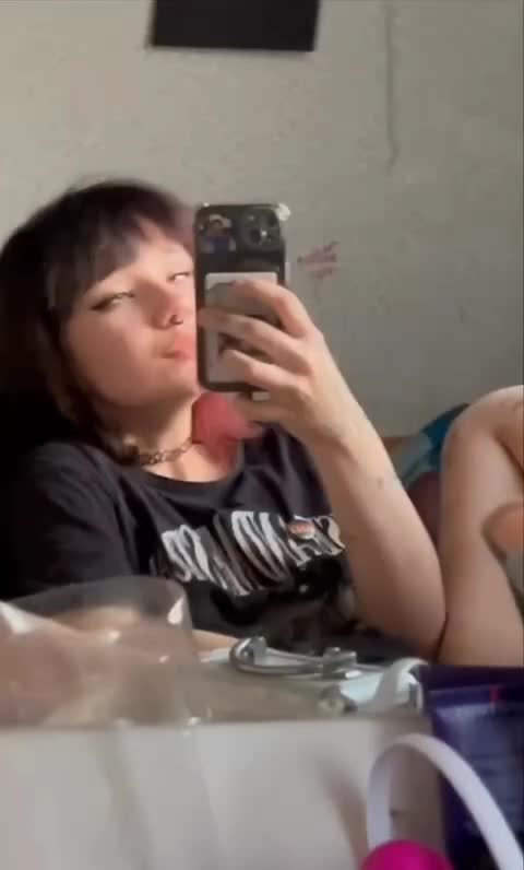 Настя занимается самоудовлетворением и снимает процесс на камеру.