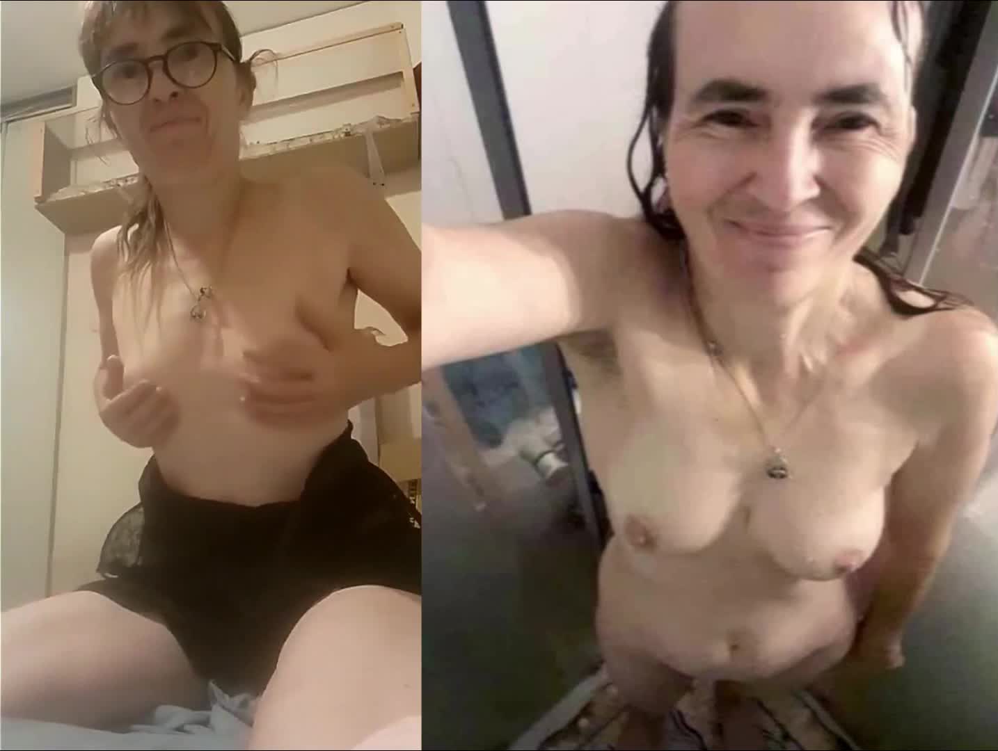 Интересный монтаж из видео и фотографий похотливой, но некрасивой женщины.