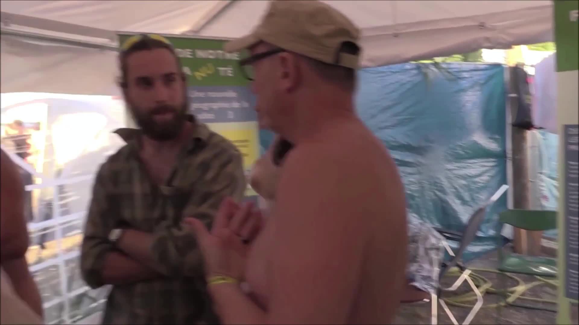 Молодая, красивая девушка с длинными волосами радостно танцует совершенно обнаженной на пляжной вечеринке, организованной Французской коммунистической партией.