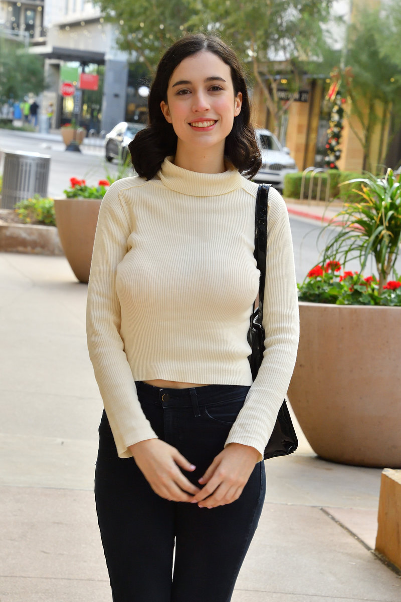 Стройная симпатичная девушка с неожиданно большой грудью.