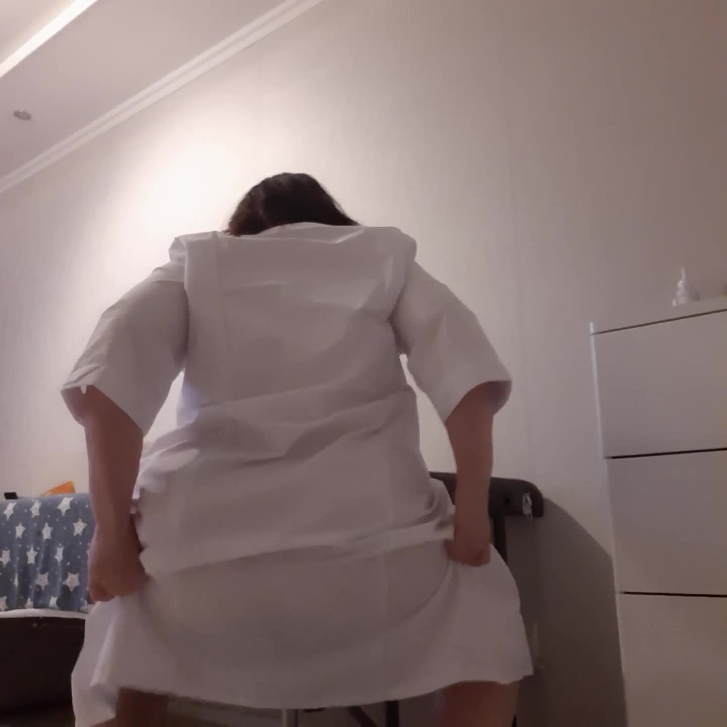 Дама в белом халате засветила свою попку
